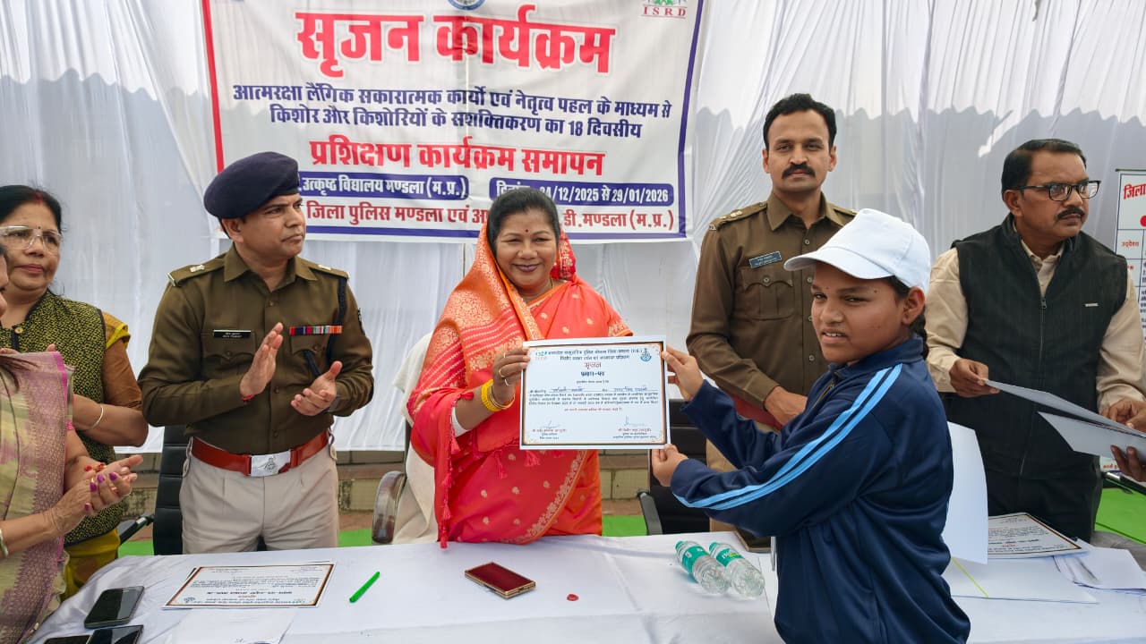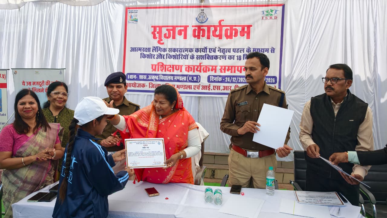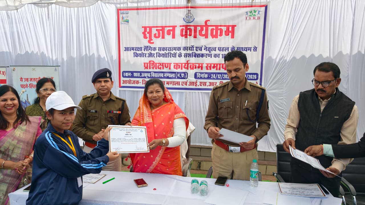 कम्यूनिटी पुलिसिंग को सशक्त बनाने के उद्देश्य से शासकीय जगन्नाथ उत्कृष्ट विद्यालय मण्डला में 18 दिवसीय सृजन कार्यक्रम का सफलतापूर्वक समापन हुआ। इस प्रशिक्षण कार्यक्रम में कुल 80 विद्यार्थियों ने सहभागिता की। आयोजन पुलिस विभाग मण्डला एवं आई.एस.आर.डी. संस्था के संयुक्त तत्वाधान में किया गया।