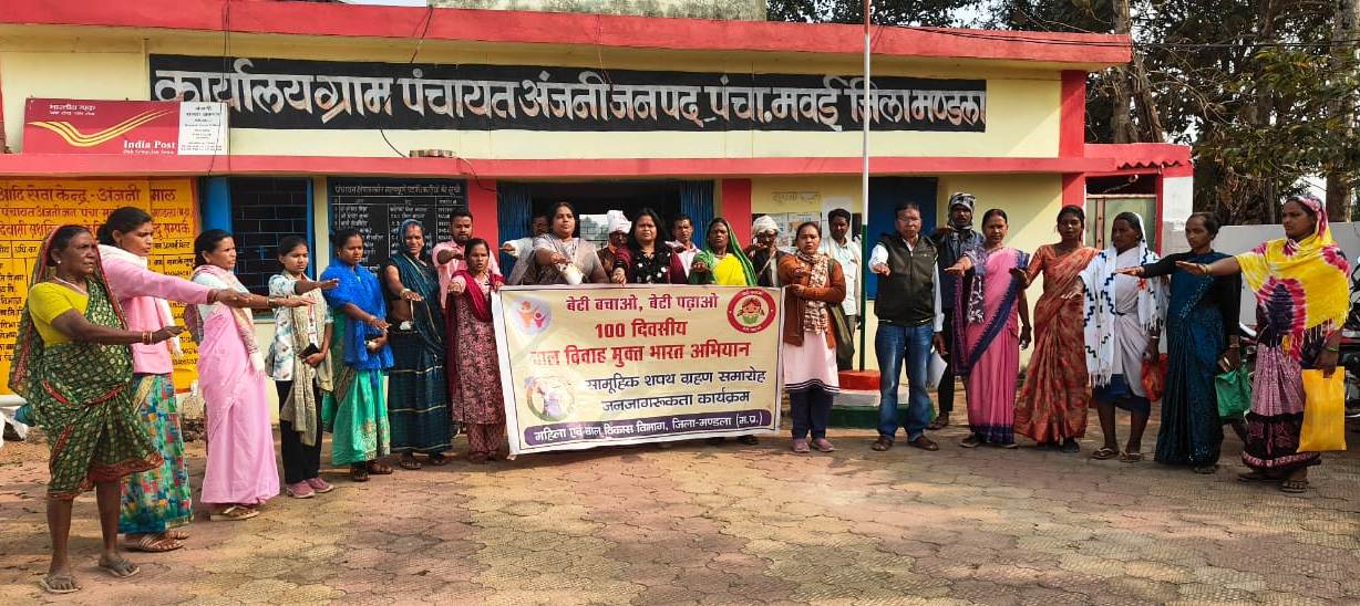 100 दिवसीय अभियान के तीसरे फेज में बाल विवाह रोकथाम के लिए गुरुवार को ग्राम पंचायत अंजनी जनपद पंचायत मवई में जागरूकता कार्यक्रम एवं रैली का आयोजन किया गया। जिसमें वन स्टॉप सेंटर प्रशासक सुश्री प्रेरणा मर्सकोले द्वारा लोगों को बाल विवाह मुक्त भारत के निर्माण में सहयोग प्रदान करने जागरूक करते हुये शपथ दिलाई गई। जिला स्तर में संचालित कन्ट्रोल रूम की भी जानकारी दी गई।