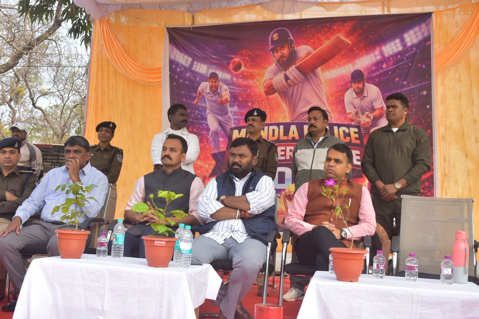 पुलिस लाइन परेड ग्राउंड में मंडला पुलिस प्रीमियर लीग 2026 का फाईनल गुरूवार को खेला गया, फाईनल मैच के साथ ही लीग का समापन हुआ। समापन कार्यक्रम में जिला पंचायत अध्यक्ष श्री संजय कुशराम, कलेक्टर श्री सोमेश मिश्रा, पुलिस अधीक्षक श्री रजत सकलेचा, अतिरिक्त पुलिस अधीक्षक श्री शिव कुमार वर्मा, डिप्टी कमांडेंट श्री प्रदीप शेंडे, एसडीओपी मंडला श्री पीयूष मिश्रा, असिस्टेंट कमांडेंट श्री बलवीर चावण्ड एवं अन्य अधिकारी,बटालियन के जवान, होमगार्ड सहित अन्य खिलाड़ी और दर्शक मौजूद थे।