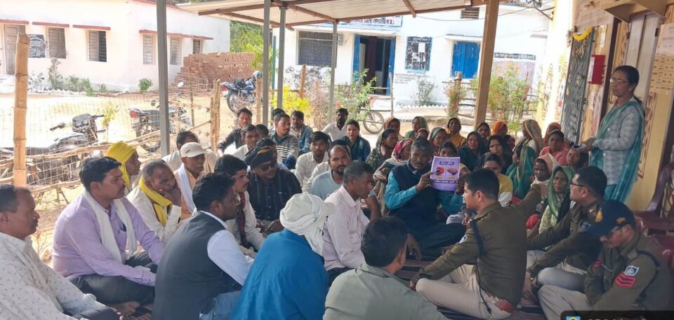 पुलिस अधिकारियों द्वारा चौपाल लगाकर ग्रामीणों को जागरूक किया गया।
