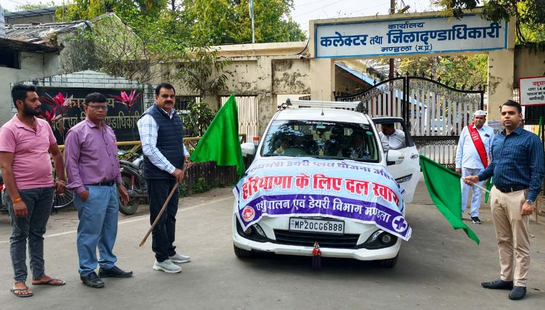 मुख्यमंत्री डेयरी प्लस कार्यक्रम के अंतर्गत शुक्रवार को कलेक्टर श्री सोमेश मिश्रा द्वारा जिले के 10 पात्र पशुपालकों को करनाल (हरियाणा) से मुर्रा नस्ल की उन्नत भैंस क्रय करने के लिए हरी झंडी दिखाकर रवाना किया गया।
