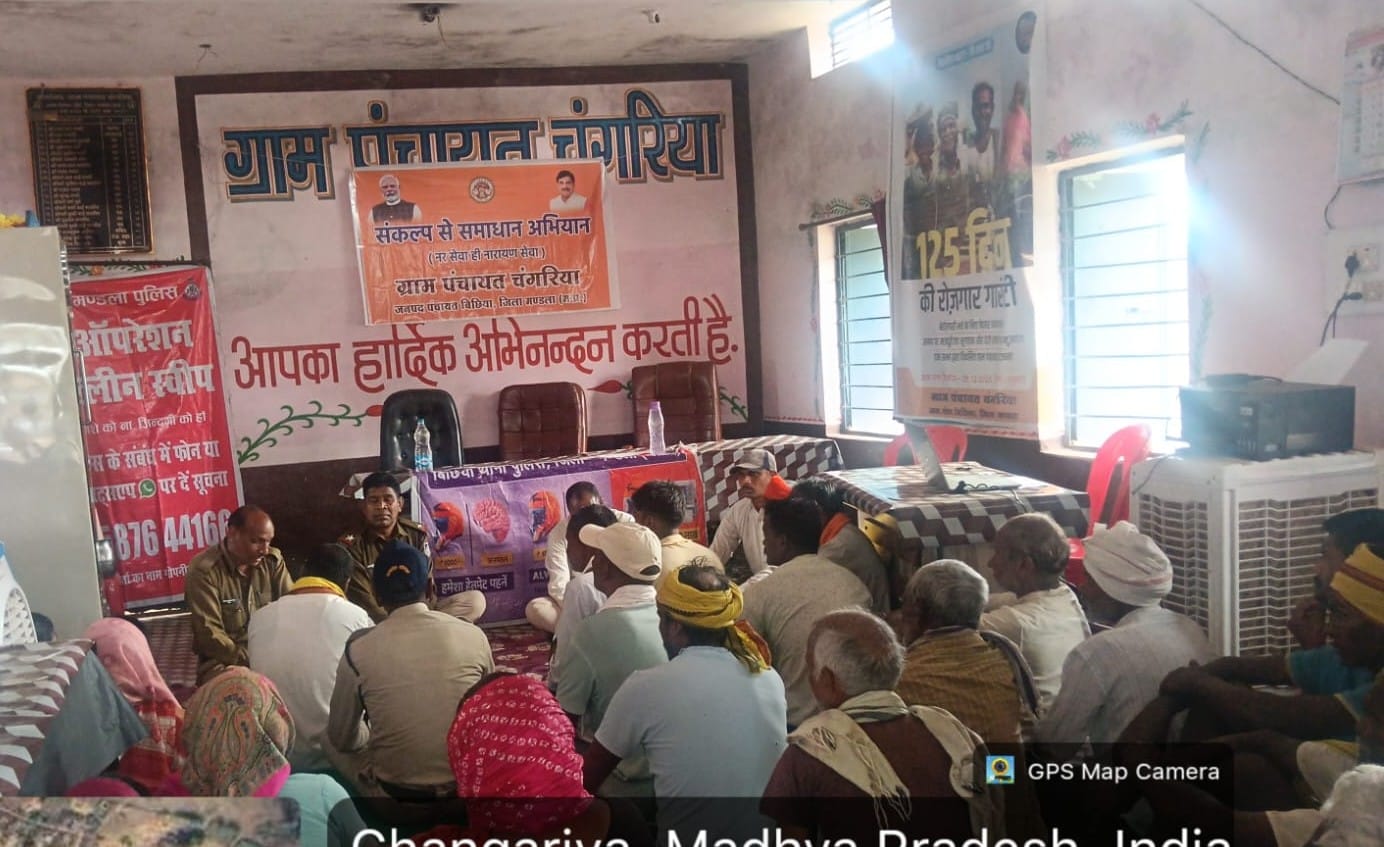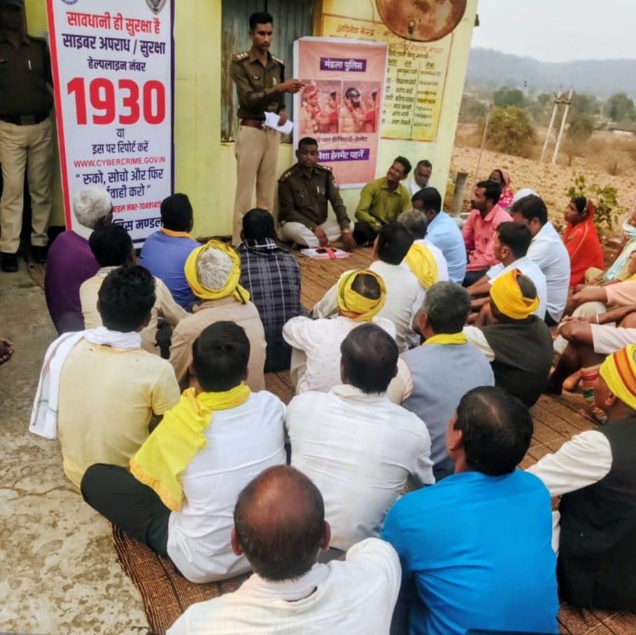 गांव-गांव पहुंची मंडला पुलिस, चौपाल के माध्यम से हेलमेट, साइबर सुरक्षा एवं नशा मुक्ति पर विशेष जनसंवाद