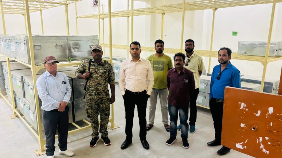 कलेक्टर एवं जिला निर्वाचन अधिकारी श्री सोमेश मिश्रा ने मंगलवार को शासकीय पॉलिटेक्निक कॉलेज मंडला में स्थित ईवीएम एवं वीवीपेट वेयरहाउस का मान्यता प्राप्त राजनैतिक दलों के प्रतिनिधियों की मौजूदगी में त्रैमासिक निरीक्षण किया। इस दौरान उन्होंने विधानसभा बिछिया, निवास तथा मंडला के लिए निर्धारित ईव्हीएम हॉल का गेट खुलवाकर विधिवत निरीक्षण पूर्ण किया। कलेक्टर श्री मिश्रा ने वेयरहाऊस की सुरक्षा संबंधी व्यवस्थाओं का जायजा भी लिया। निरीक्षण के दौरान अपर कलेक्टर एवं उपजिला निर्वाचन अधिकारी श्री राजेन्द्र कुमार सिंह, निर्वाचन अधीक्षक श्री अरूण कुशवाहा, श्री सीके तिवारी, मान्यता प्राप्त राजनैतिक दलों के प्रतिनिधि उपस्थित थे।