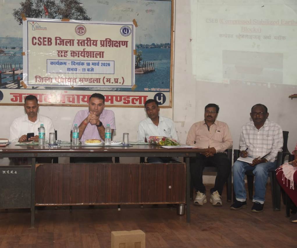 प्रधानमंत्री आवास योजना (ग्रामीण) के अंतर्गत मुख्य कार्यपालन अधिकारी, जिला पंचायत मण्डला के मार्गदर्शन में जिला स्तरीय प्रशिक्षण सह कार्यशाला का आयोजन किया गया। कार्यशाला में सीएसईबी (कम्प्रेस्ड स्टेबलाइज्ड अर्थ ब्लॉक) तकनीक आधारित आवास निर्माण के संबंध में विस्तृत प्रशिक्षण दिया गया। कार्यक्रम में ग्रामीण यांत्रिकी सेवा संभाग क्रमांक 1 एवं 2 के कार्यपालन यंत्री, सभी जनपद पंचायतों से सहायक यंत्री, उपयंत्री, पीएमएवाई-जी एवं एनआरएलएम के ब्लॉक समन्वयक, सचिव, राजमिस्त्री तथा हितग्राही सहित जिला स्तरीय अधिकारी-कर्मचारी उपस्थित रहे।