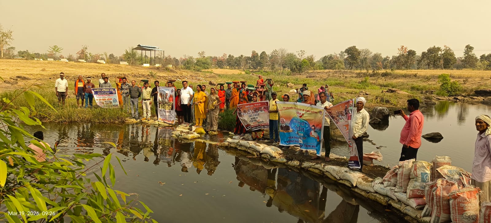 जल गंगा संवर्धन अभियान का मंडला में शुभारंभ, बोरी पीपरडाही में जनभागीदारी से हुआ बोरी बंधान कार्य