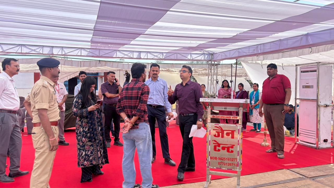 अधिकारियों द्वारा मंचीय व्यवस्था का भी विस्तार से परीक्षण किया गया। वीआईपी अतिथियों के बैठने की व्यवस्था, प्रवेश-निकास मार्ग, आमंत्रित अतिथियों के लिए सीटिंग प्लान तथा ग्रीन रूम में उपलब्ध सुविधाओं का निरीक्षण करते हुए आवश्यक सुधार के निर्देश दिए गए। इसके साथ ही मीडिया गैलरी, पेयजल, स्वच्छता, विद्युत आपूर्ति एवं चिकित्सा सुविधाओं की उपलब्धता सुनिश्चित करने पर विशेष जोर दिया गया।
