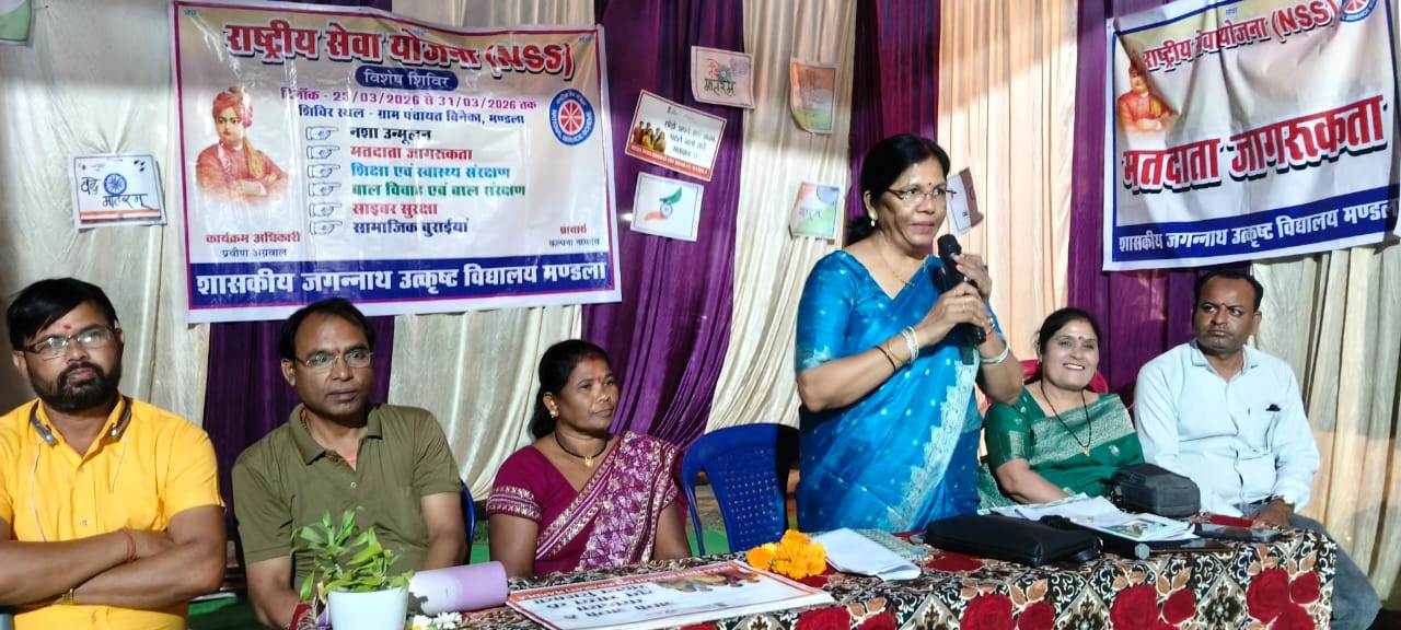 7 दिवसीय शिविर के दौरान स्वयंसेवकों ने नशा मुक्ति, मतदाता जागरूकता, शिक्षा, स्वास्थ्य, साइबर सुरक्षा और बाल संरक्षण जैसे विषयों पर ग्रामीणों को जागरूक किया। उप सरपंच श्री अमित पटेल ने गांव को नशा मुक्त बनाने का आह्वान किया।