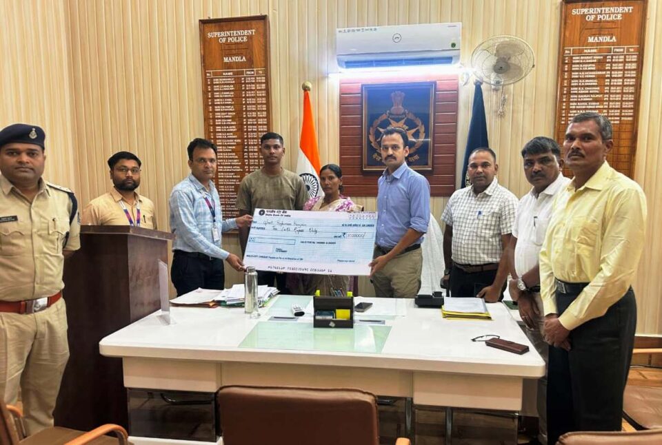 35वीं वाहिनी, पुलिस ग्वारा मंडला में पुलिस सैलरी पैकेज योजना के अंतर्गत दिवंगत आरक्षकों के नामांकित परिजनों को बीमा दावा राशि प्रदान की गई। स्वर्गीय आरक्षक श्री पवन कास्देकर, जो 35वीं वाहिनी मंडला से प्रतिनियुक्ति पर हॉक फोर्स बालाघाट में पदस्थ थे, का सड़क दुर्घटना में आकस्मिक निधन हो गया था। उक्त प्रकरण में उनके नॉमिनी भाई श्री रामकुमार कास्देकर के खाते में एक करोड़ रुपये की दुर्घटना बीमा दावा राशि प्रदाय की गई।