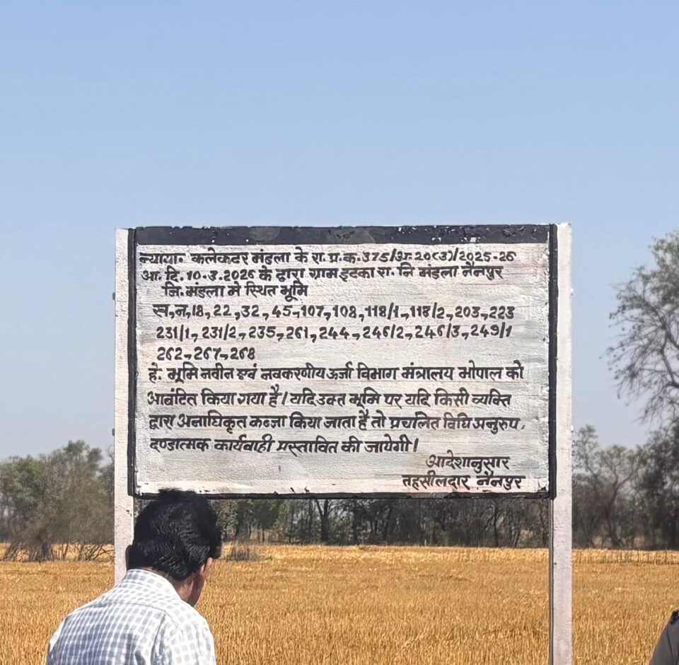 साथ ही, संबंधित स्थल पर पुनः अतिक्रमण न हो, इसके लिए सूचना पट्ट स्थापित किया गया एवं अतिक्रमणकर्ताओं पर नियमानुसार बॉन्ड ओवर की कार्यवाही की जा रही है। उक्त भूमि कलेक्टर के आदेशानुसार नवीन एवं नवकरणीय ऊर्जा विभाग, भोपाल को आवंटित की गई है तथा नोडल विभाग ऊर्जा विभाग को भूमि का आधिपत्य भी सौंप दिया गया है।