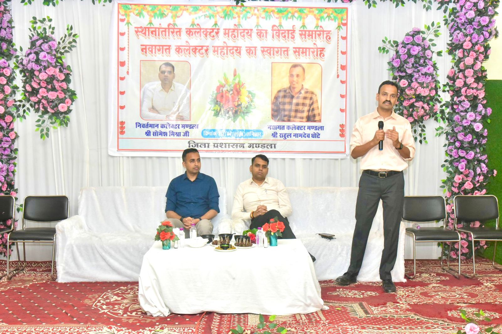 शनिवार की शाम शहर के एक निजी मोटेल के बैंक्वेट हॉल में आयोजित समारोह में जिला कलेक्टर श्री सोमेश मिश्रा को नर्मदापुरम स्थानांतरण पर गरिमामयी विदाई दी गई। इसी कार्यक्रम में नवागत कलेक्टर श्री राहुल नामदेव धोटे का आत्मीय स्वागत भी किया गया।