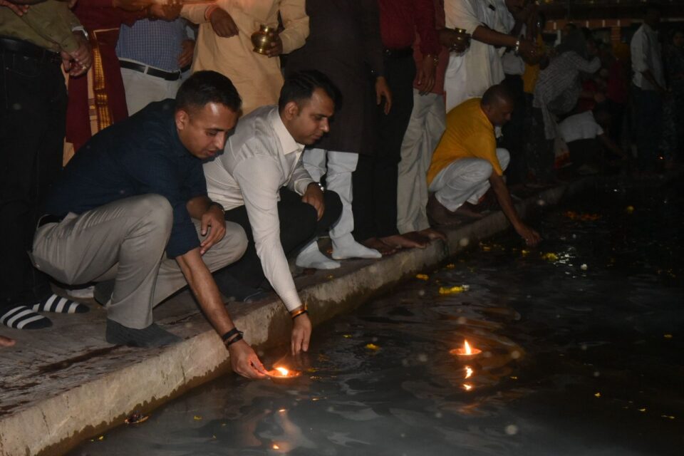 जिले का पदभार ग्रहण करने के बाद कलेक्टर श्री राहुल नामदेव धोटे नमामि नर्मदे महा आरती ट्रस्ट द्वारा माहिष्मति घाट पर आयोजित पंच चौकी महा आरती में शामिल हुए। उन्होंने माँ नर्मदा की आरती और दुग्ध अभिषेक कर जिले वासियों की मंगल कामना की प्रार्थना की। महा आरती के पश्चात ट्रस्ट की ओर से निवर्तमान कलेक्टर श्री सोमेश मिश्रा को गरिमामयी विदाई भी दी गई। ट्रस्ट की पदेन अध्यक्ष एसडीएम मण्डला श्रीमती सोनल सिडाम ने इस दौरान नमामि नर्मदे महा आरती ट्रस्ट की स्थापना, माहिष्मती घाट नामकरण और पंच चौकी महाआरती की शुरुआत के लिए निवर्तमान कलेक्टर श्री मिश्रा का आभार व्यक्त किया। इस अवसर पर उपस्थित लोगों से आत्मीय चर्चा करते हुए श्री मिश्रा ने कहा कि माँ नर्मदा की यह महाआरती ट्रस्ट द्वारा जिले के सामाजिक संगठनों के सहयोग से हमेशा इसी तरह चलती रहेगी। उन्होंने माँ नर्मदा से जिले वासियों के कल्याण की कामना की।