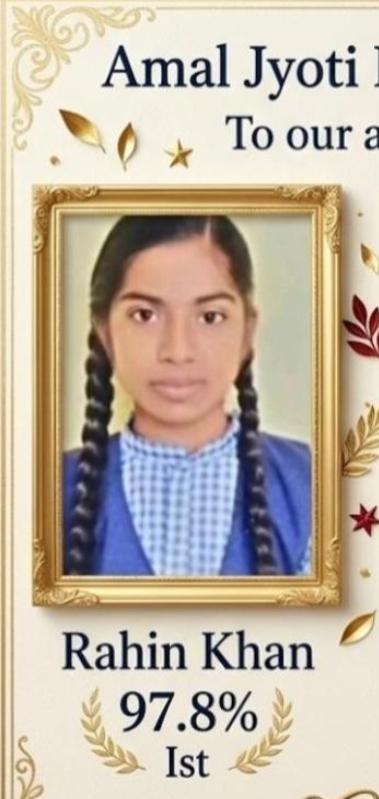 मंडला उप नगरी क्षेत्र के महाराजपुर स्थित अमल ज्योति हाई सेकेंडरी स्कूल की छात्रा राहीन खान ने इस बार की दसवीं बोर्ड परीक्षा में 97.8% अंक हासिल कर फर्स्ट रैंक प्राप्त की है। अपनी कड़ी मेहनत से उन्होंने न केवल अपने स्कूल बल्कि पूरे जिले का नाम भी रोशन किया है।