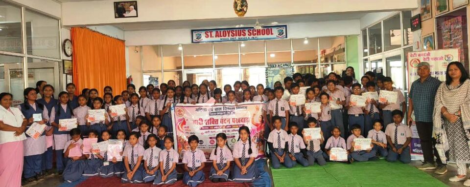 नारी शक्ति वंदन पखवाड़ा के अंतर्गत सेंट अलॉयसिस स्कूल, निवास में जागरूकता कार्यक्रम का आयोजन किया गया। कार्यक्रम में उपस्थित छात्र-छात्राओं एवं प्रतिभागियों को वन स्टॉप सेंटर प्रशासक सुश्री प्रेरणा मर्सकोले द्वारा महिलाओं को लोकसभा, विधानसभा एवं राज्यसभा में 33 प्रतिशत आरक्षण के प्रावधान के बारे में विस्तार से बताया। साथ ही बाल विवाह प्रतिषेध अधिनियम की जानकारी देते हुए बाल विवाह मुक्त भारत के निर्माण के लिए सभी को शपथ दिलाई गई।