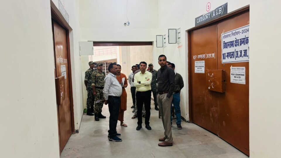 कलेक्टर एवं जिला निर्वाचन अधिकारी श्री राहुल नामदेव धोटे ने गुरूवार को शासकीय पॉलिटेक्निक कॉलेज मंडला में स्थित ईवीएम एवं वीवीपेट वेयरहाउस का मासिक निरीक्षण किया। इस दौरान वेयरहाऊस की सुरक्षा संबंधी व्यवस्थाओं का जायजा लिया गया। निरीक्षण के दौरान अपर कलेक्टर श्री राजेन्द्र कुमार सिंह, सीईओ जिला पंचायत श्री शाश्वत सिंह मीना, मंडला एसडीएम श्रीमती सोनल सिडाम, निर्वाचन अधीक्षक श्री अरूण, श्री सीके तिवारी उपस्थित रहे।