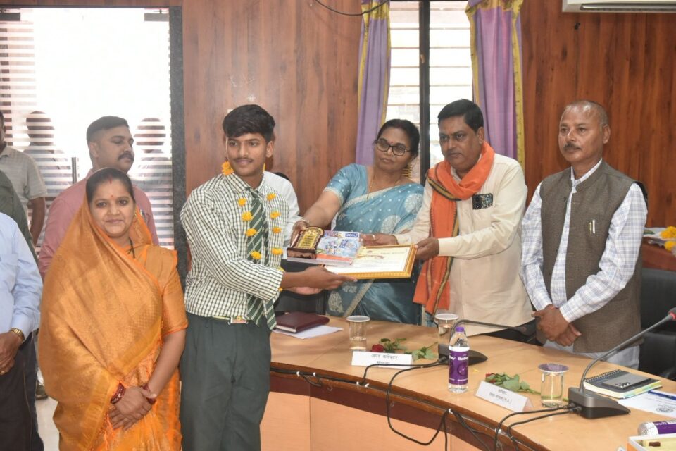 सम्मान समारोह में नगरपालिका अध्यक्ष श्री विनोद कछवाहा ने भी होनहार विद्यार्थियों को शुभकामनाएं दी। इस मौके पर कलेक्टर श्री राहुल नामदेव धोटे ने समारोह में अपने विद्यार्थी जीवन से लेकर प्रशासनिक सेवा तक की यात्रा साझा करते हुए विद्यार्थियों को संघर्ष, धैर्य और संकल्प का महत्व समझाया। उन्होंने बताया कि कक्षा 10वीं में उन्होंने जिले में तीसरा स्थान प्राप्त किया था। उस समय तत्कालीन कलेक्टर श्री मलय श्रीवास्तव द्वारा स्कूल में सम्मान समारोह आयोजित किया गया था, लेकिन किसी कारणवश वे स्वयं उपस्थित नहीं हो सके और उन्होंने सहायक कलेक्टर (आईएएस) पी. नरहरि सर को भेजा। उसी कार्यक्रम में पहली बार उनकी मुलाकात हुई। उन्होंने मुझसे पूछा क्या बनना है ? मैंने बिना झिझक कहा कलेक्टर। उन्होंने पीठ थपथपाते हुए कहा बन जाओगे।
