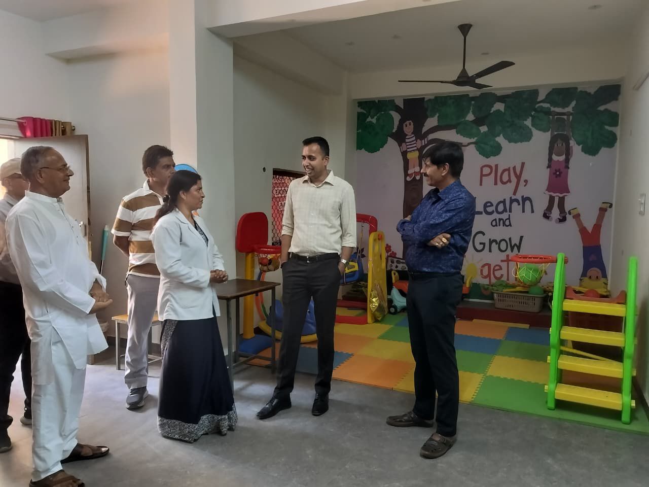 कलेक्टर श्री धोटे ने नर्सरी, एलकेजी-1 एवं एलकेजी-2 की कक्षाओं का सूक्ष्म निरीक्षण किया। उन्होंने प्रबंधन को निर्देशित किया कि बच्चों के सर्वांगीण बौद्धिक विकास के लिए विशेष गतिविधियाँ आयोजित की जाएं। उन्होंने निर्देश देते हुए कहा कि बच्चों को अपनी जड़ों से जोड़ने के लिए प्रतिदिन 15 से 20 मिनट की ’संस्कृति की कक्षा’ संचालित की जाए।