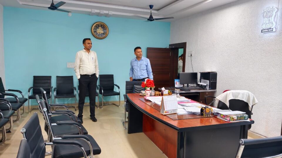 कलेक्टर श्री राहुल नामदेव धोटे ने शुक्रवार की शाम जिला पंचायत कार्यालय का निरीक्षण किया। यहाँ उन्होंने पंचायती राज शाखा, स्थापना, स्टेनो कक्ष सहित अन्य शाखाओं का निरीक्षण कर व्यवस्थाओं का जायजा लिया। उन्होंने जिला पंचायत के पुराने भवन को ध्वस्त कर वहाँ जिला पंचायत की आय बढ़ाने के लिए नव निर्माण का प्रस्ताव व प्राक्कलन तैयार करने का सुझाव दिया। इस दौरान मुख्य कार्यपालन अधिकारी जिला पंचायत श्री शाश्वत सिंह मीना, अतिरिक्त मुख्य कार्यपालन अधिकारी जिला पंचायत श्री विनोद मरावी, सहायक परियोजना अधिकारी श्री कपिल तिवारी, सहित संबंधित मौजूद रहे।