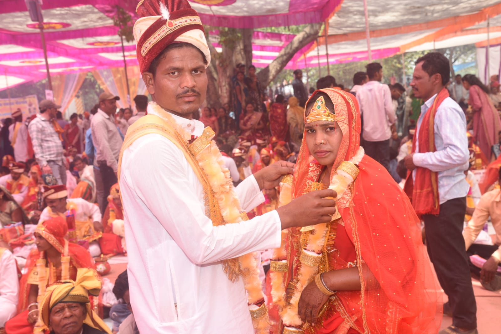 महाराजपुर संगम घाट परिसर में रविवार को मुख्यमंत्री कन्या विवाह/निकाह योजना के तहत भव्य सामूहिक विवाह समारोह आयोजित हुआ। माँ नर्मदा के पावन तट पर मंडला नगर निकाय, बम्हनी नगर निकाय, मंडला जनपद पंचायत और मोहगांव जनपद पंचायत क्षेत्र के कुल 200 जोड़े वैवाहिक बंधन में बंधे। समारोह में जनजातीय परंपरा और हिंदू रीति-रिवाज से विवाह सम्पन्न हुए। साथ ही दो मुस्लिम जोड़ों का निकाह भी मुस्लिम मजहबी रीति से पढ़ाया गया।