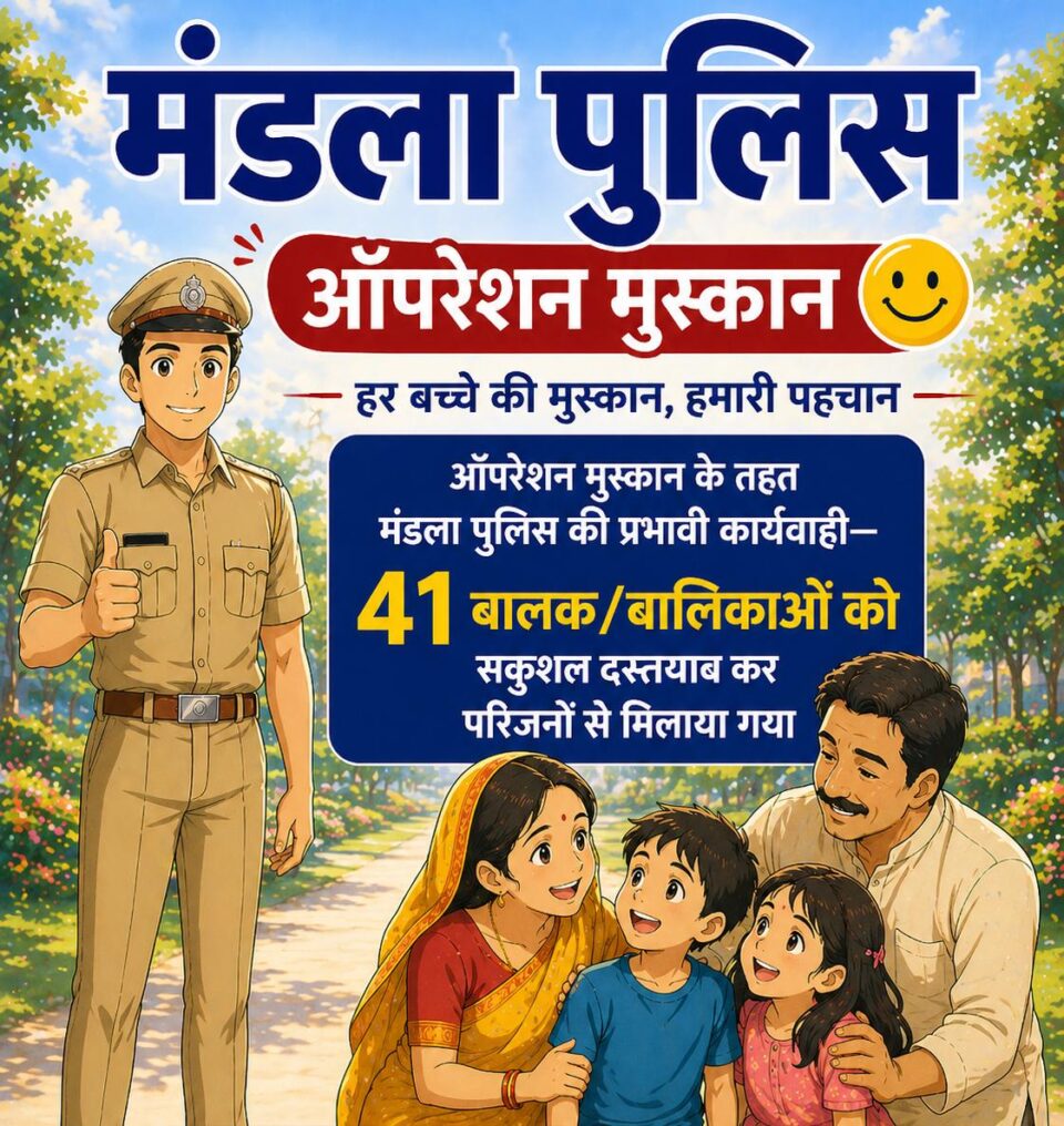 ऑपरेशन मुस्कान के तहत मंडला पुलिस की बड़ी सफलता 41 बालक/बालिकाओं को सकुशल दस्तयाब कर परिजनों से मिलाया